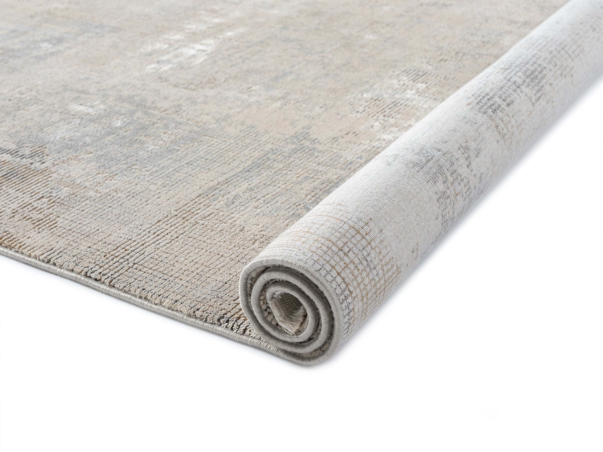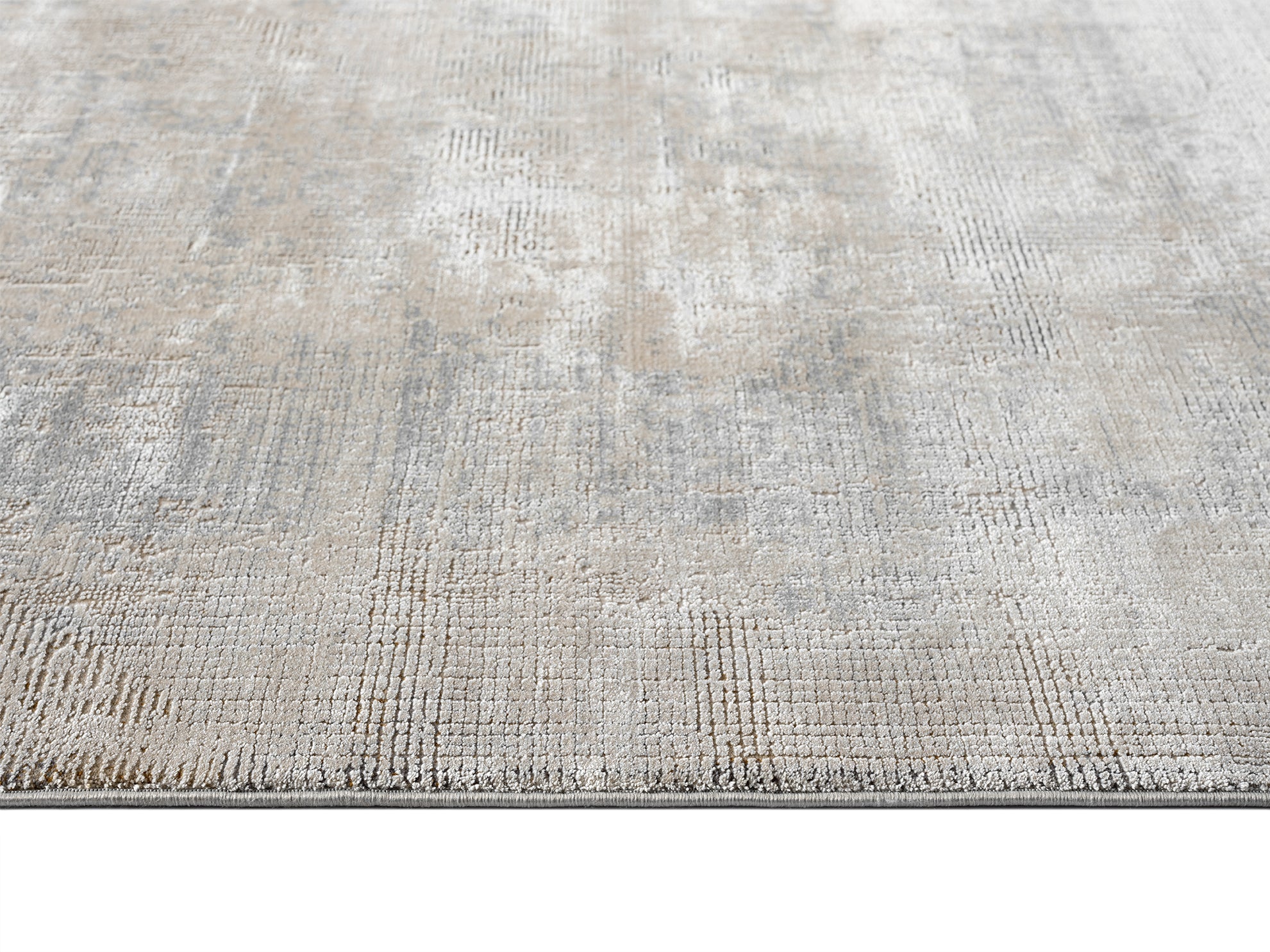 An elegant tone-on-tone rug featuring all over abstract patterns with a touch light shimmer and texture.