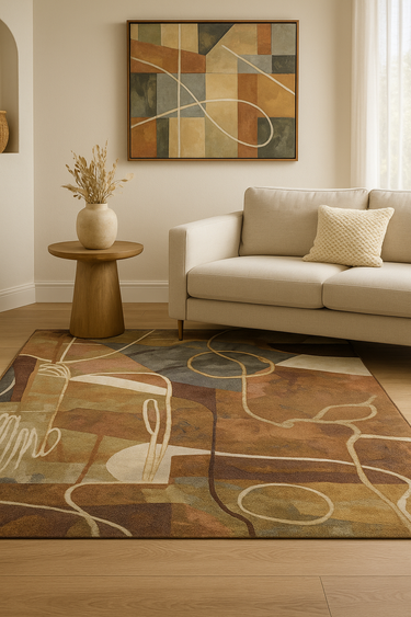 A power-loomed 1,000,000 points performance rug with vibrant design patterns.